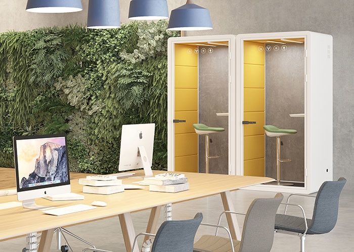 These stylish designs won’t let you down if you want a quiet space for your employees to make phone calls. They’re compact and come with a 35 dB+- rating. You also have the option to customize the panels with colored cushions and can install the flat-packed pod in minutes.