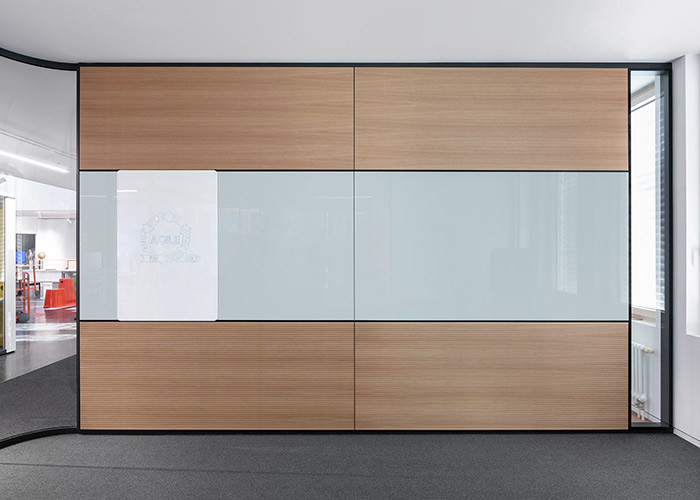 In summary, the partition offers a comprehensive solution that addresses sound insulation, heat dissipation, fire safety, natural light integration, and aesthetic enhancement. By combining functionality with style, the partition creates a comfortable, safe, and visually appealing workspace conducive to productivity and well-being.