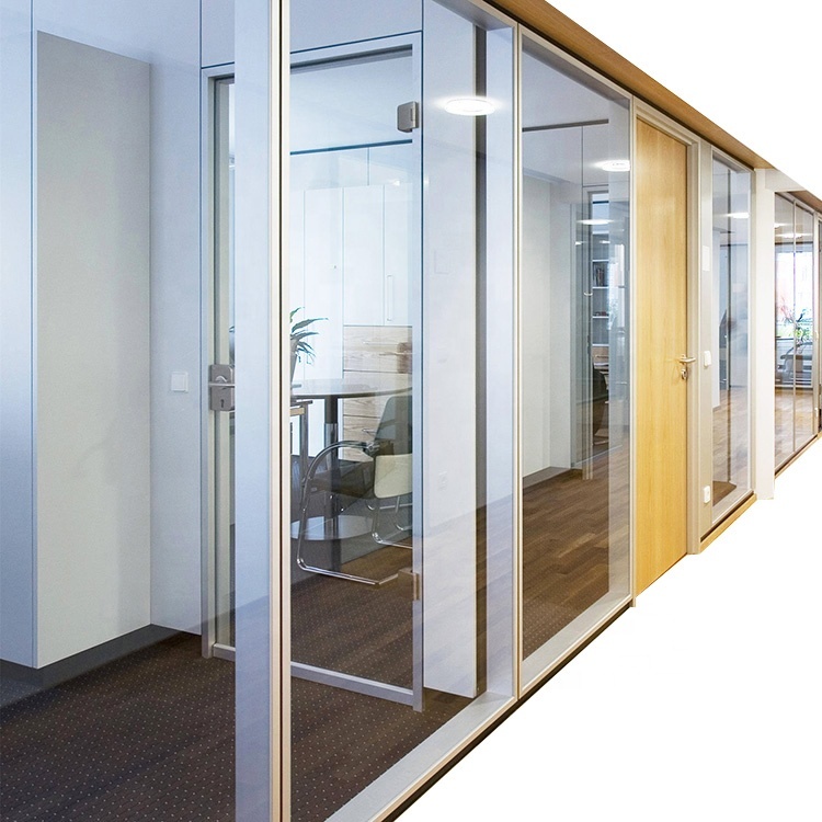 We have different types with single / double glazed or solid panels, glass can be clear tempered glass, frosted glass, painting glass, smart glass etc..Solid materials can be melamine laminate, HPL, Aluminum board, Steel plate.