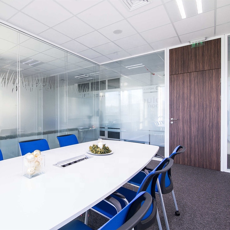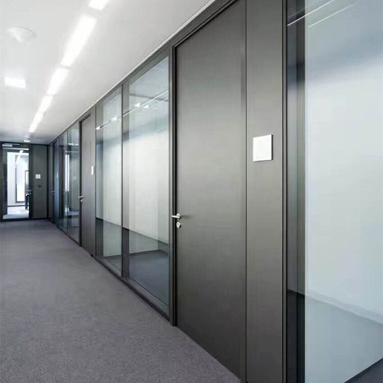 We have different types with single / double glazed or solid panels, glass can be clear tempered glass, frosted glass, painting glass, smart glass etc..Solid materials can be melamine laminate, HPL, Aluminum board, Steel plate.